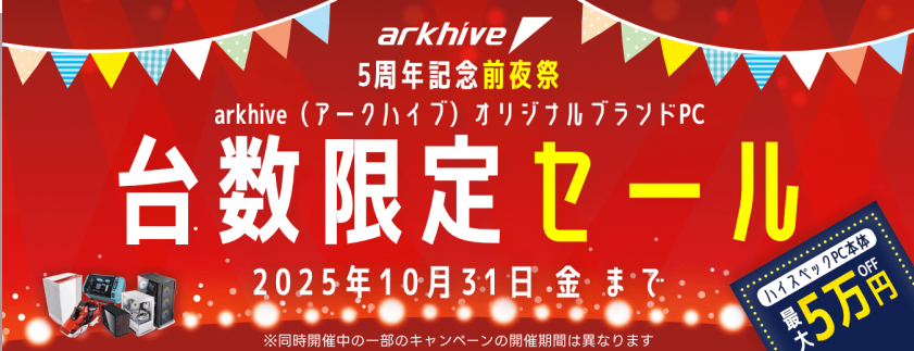 | 5周年記念前夜祭 | 10月31日(金)まで | 特価ゲーミングPC 特価PCパーツ |