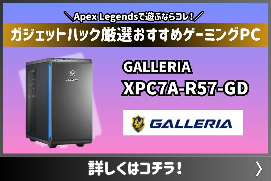 Apexをプレイするのに、最もおすすめなゲーミングPCは『GALLERIA XPC7A-R57-GD』です。