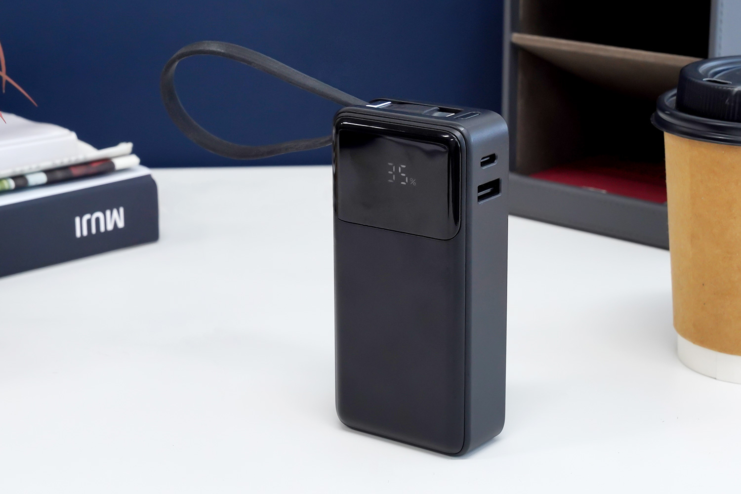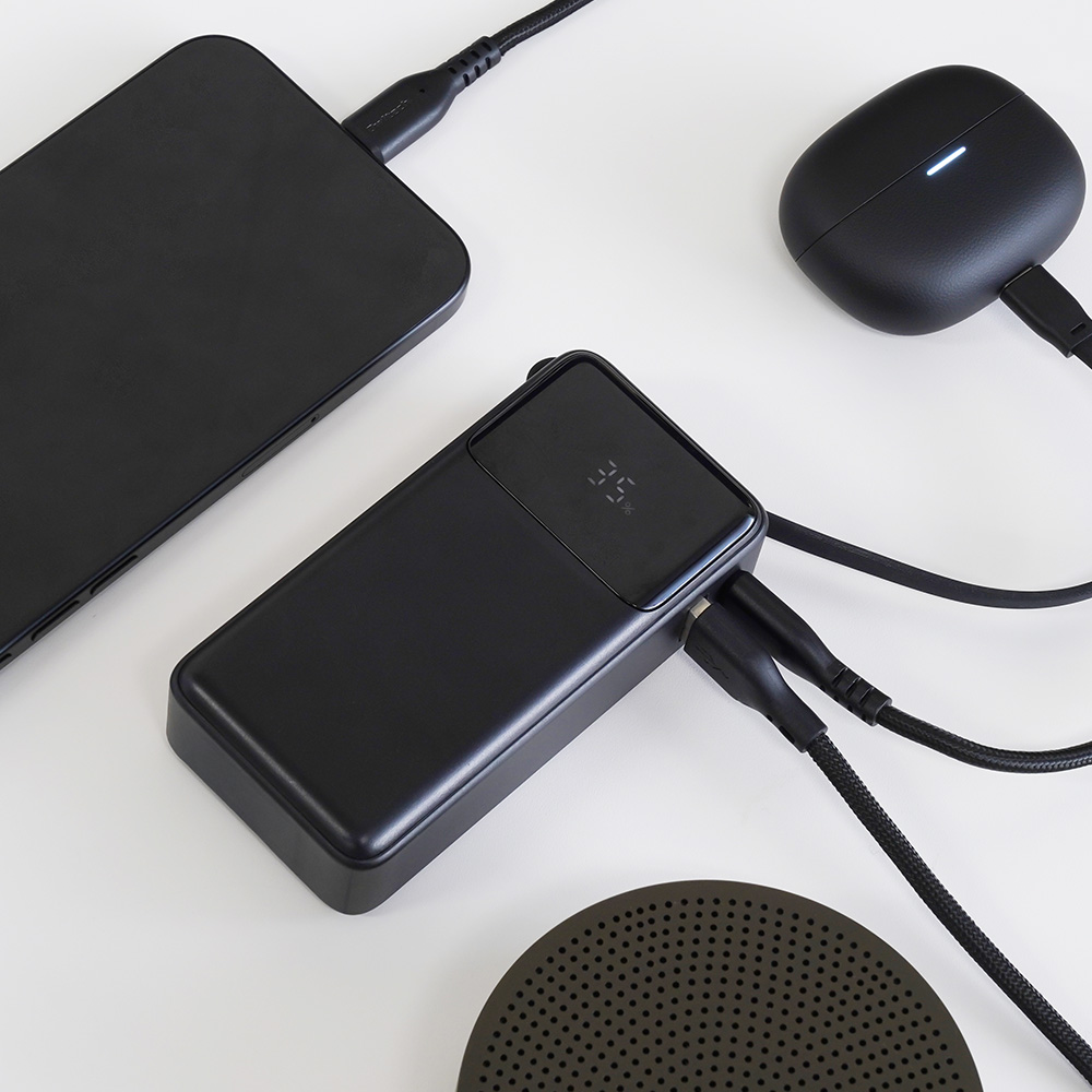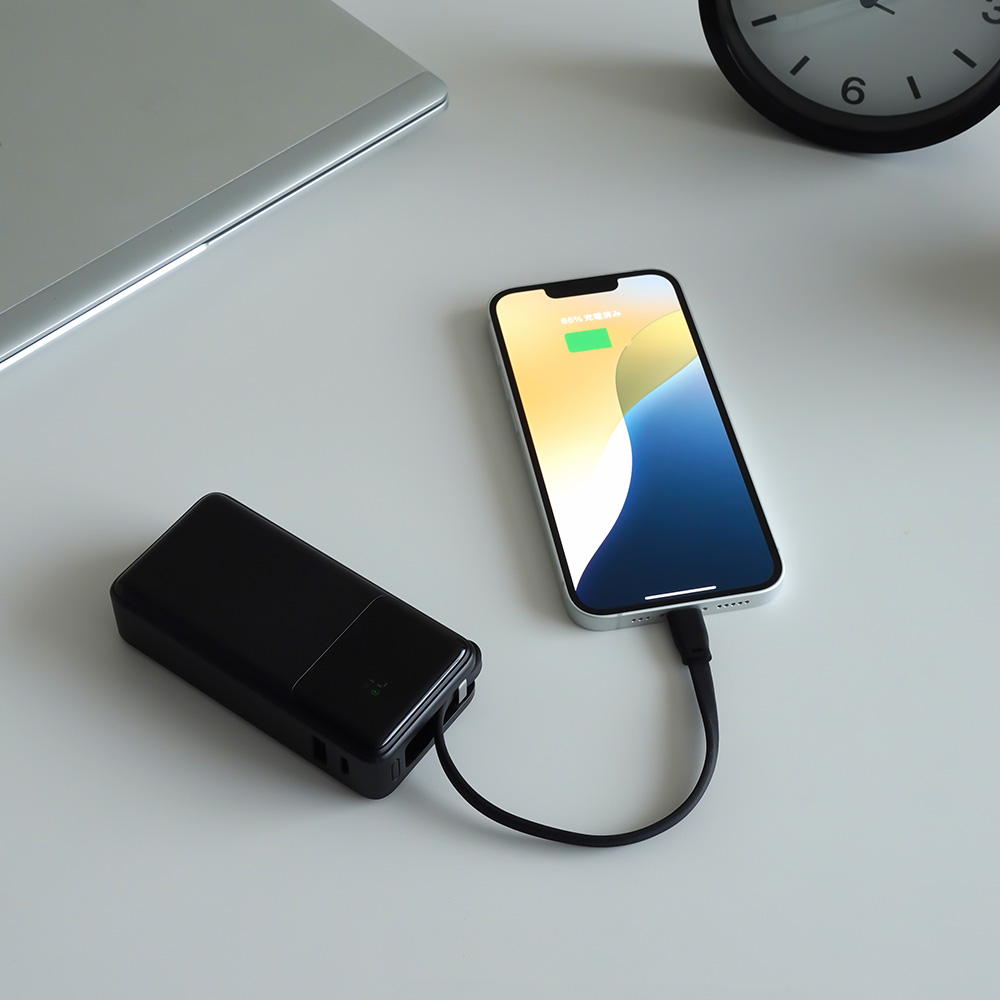 ケーブル一体型のモバイルバッテリーでいつでもすぐに充電