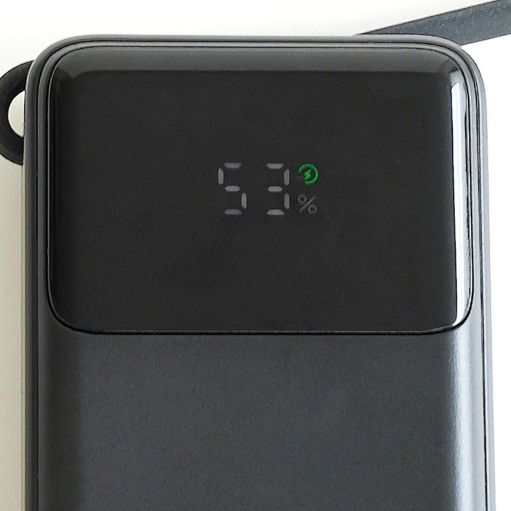 バッテリー残量を1%単位で確認できるため、LEDランプ数の表示よりも充電のタイミングが分かりやすい仕様です。PD充電や低電流モードの状態も確認できます。