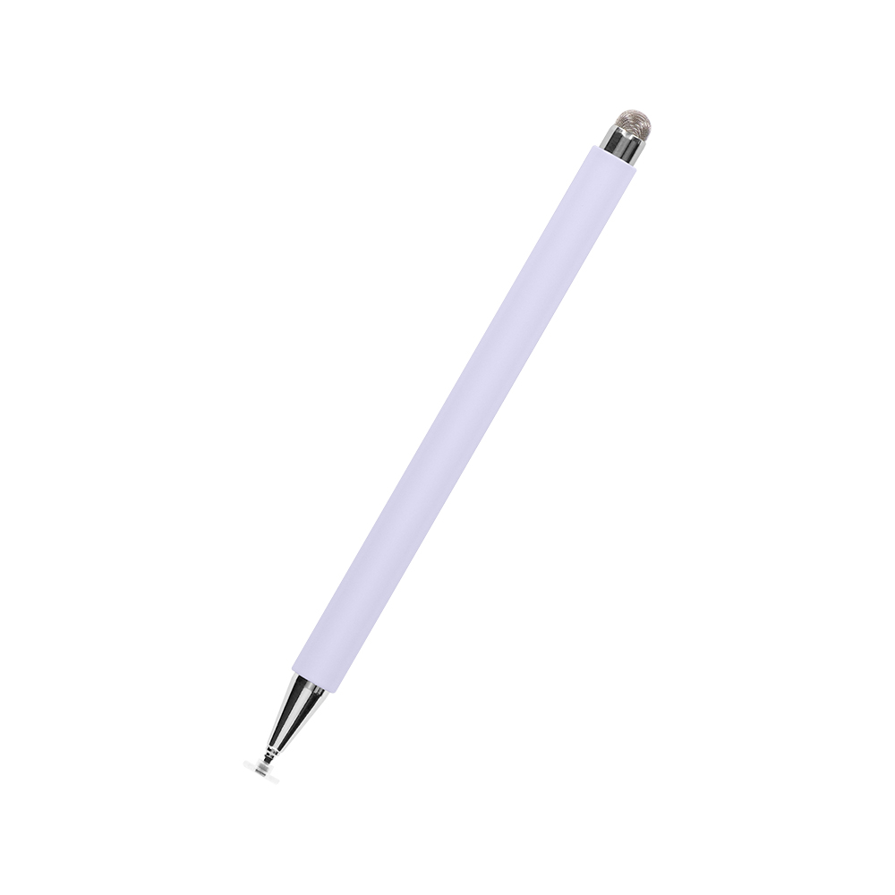 超感度ファイバーとスリムディスクの2WAYペン先仕様で、スリムディスクのペン先は本体をひねって繰り出せるスクリュータイプのタッチペンになっています。ふわふわ柔らかい超感度ファイバーのペン先は、画面保護ガラスを貼った機器でも引っかかりなく軽い力でタッチやスライド操作が快適にできます。また、タッチ時に音がしないため静かな場所でもお使いいただけます。もう一方のペン先は従来の透明ディスクよりも一回り小さい約6mm幅でさらに狙いやすいスリムディスクで、より狙った場所へタッチしやすいペン先です。こちらもペン先の替え芯が各1個ずつ同梱されています。