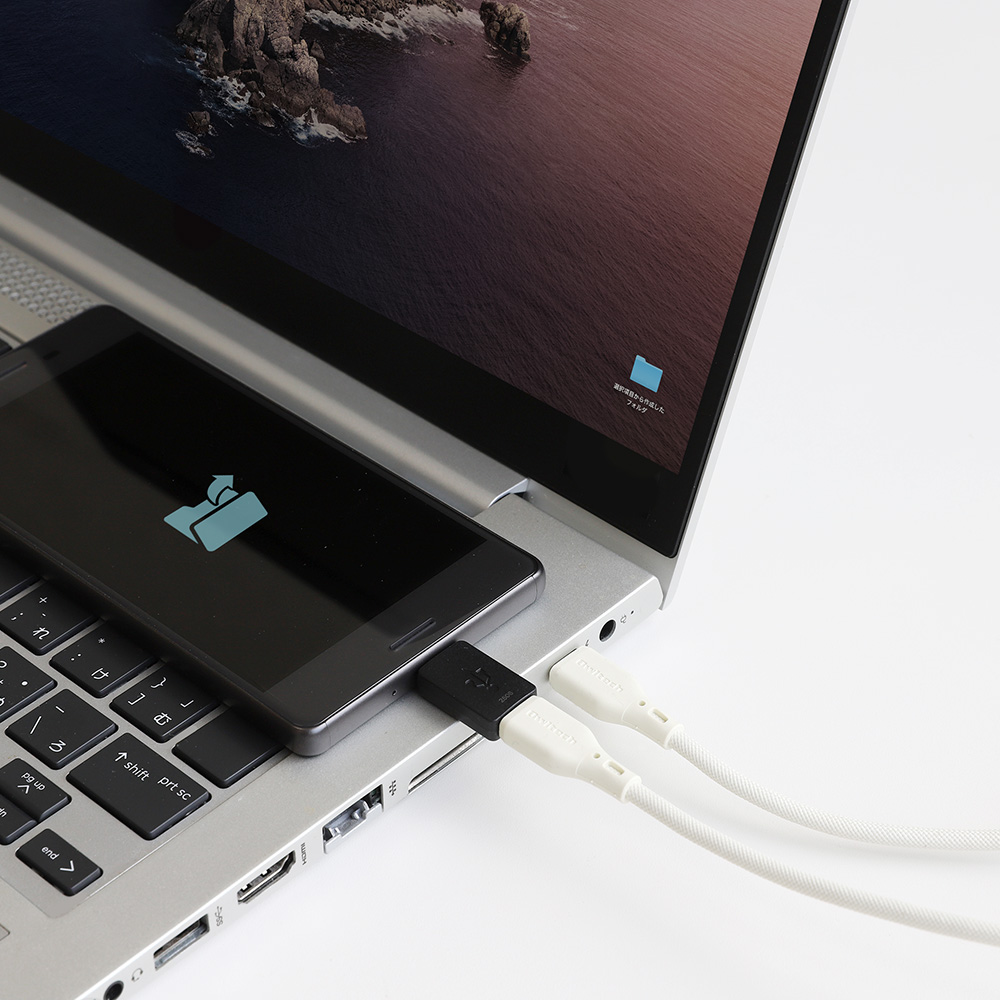 データ転送に対応しているので、スマートフォンからノートPCに写真や動画などを移動できます。