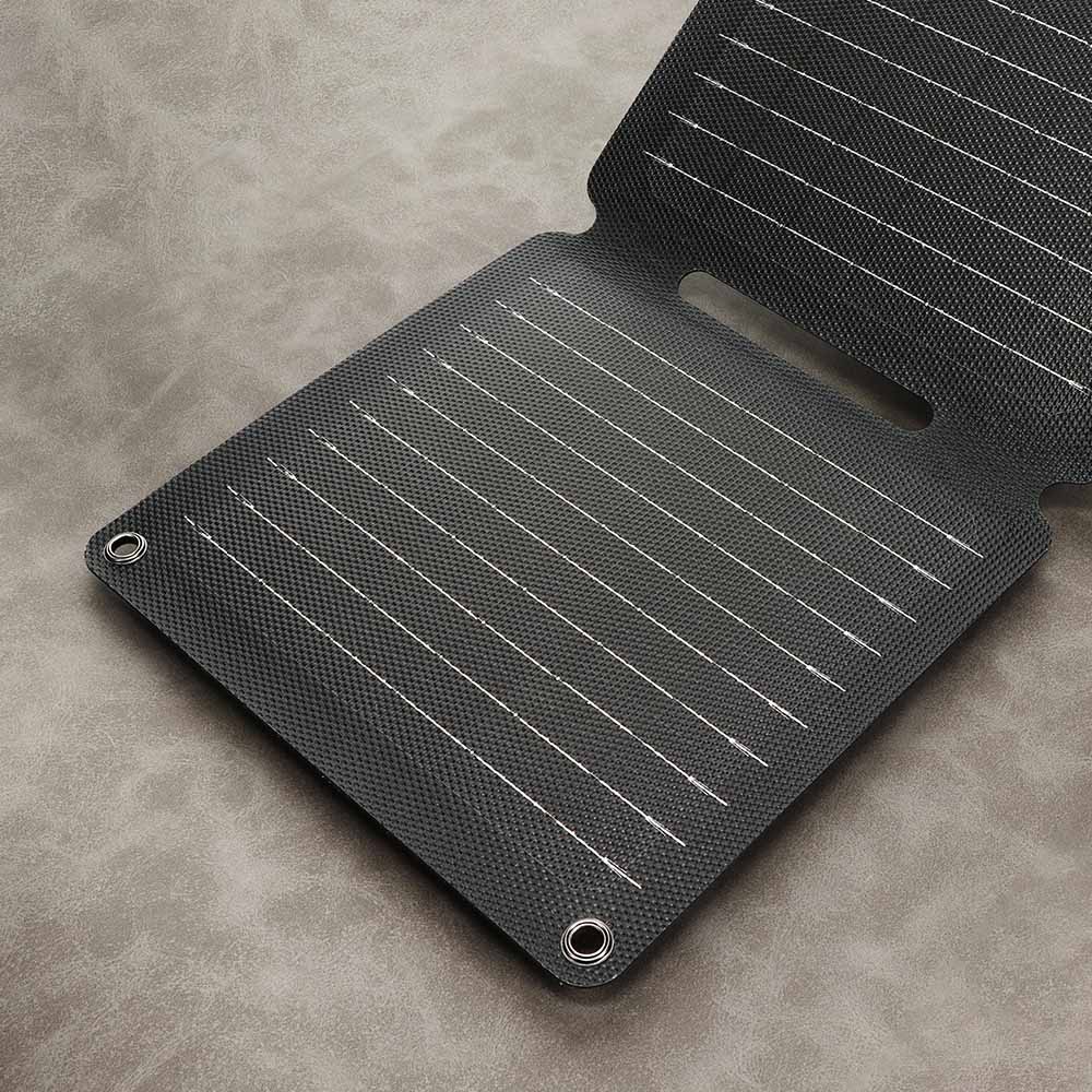 電力ロスの少ない単結晶シリコンパネルを2面搭載。最大変換効率は22.4%、発電性能は最大10W。小型ながらしっかり発電し、安定した充電をサポートします。