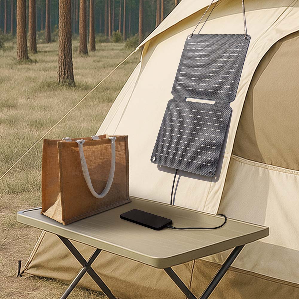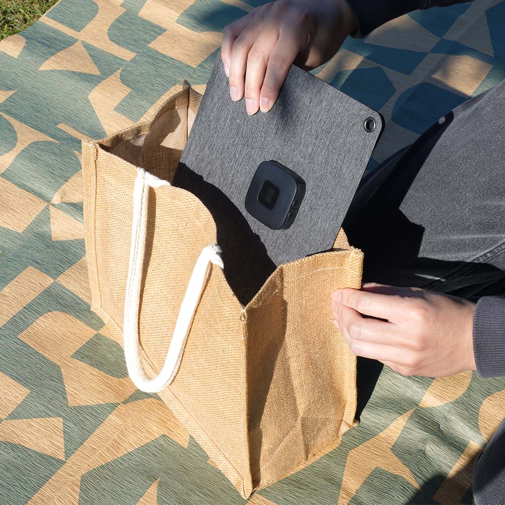 太陽光でスマートフォンを充電。収納しやすく、防災・アウトドアにも最適