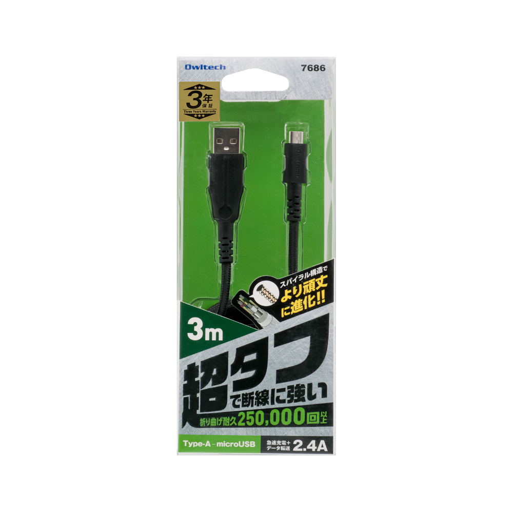 製品は、従来の超タフを「よりしなやかに」「より頑丈に」進化させた25万回以上の屈曲試験に耐えたデータ転送/充電ケーブルです。ケーブル内部の線材はスパイラル構造を採用し、コネクターの付け根など負荷のかかる部分の素材を変更しました。また、皮膜に新型強化メッシュを用いたことにより、ねじれや引っ張りに強く心地よい手触りになっています。