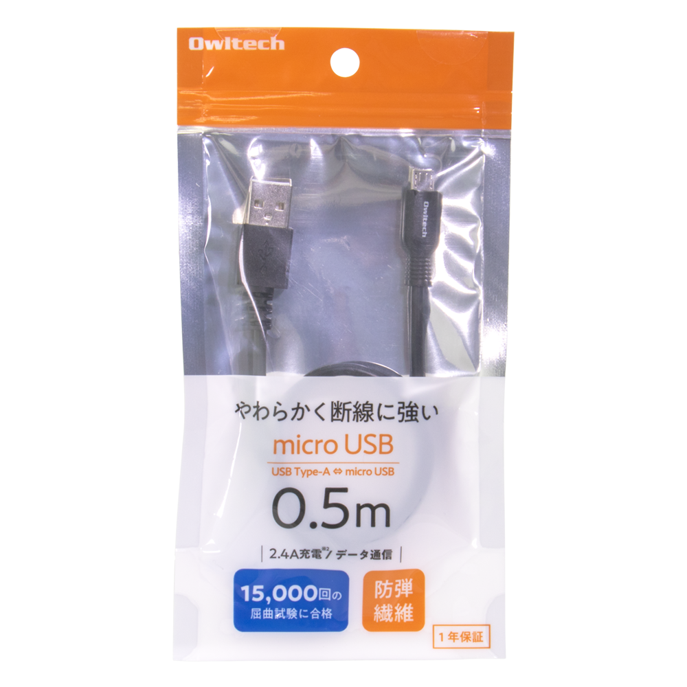 micro USB充電 / データ通信ケーブル 「やわらかく断線に強い」シリーズ OWL-CBKMUSR