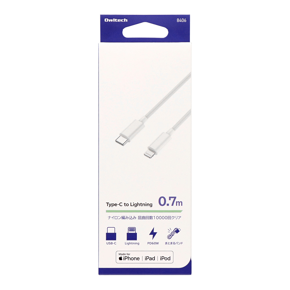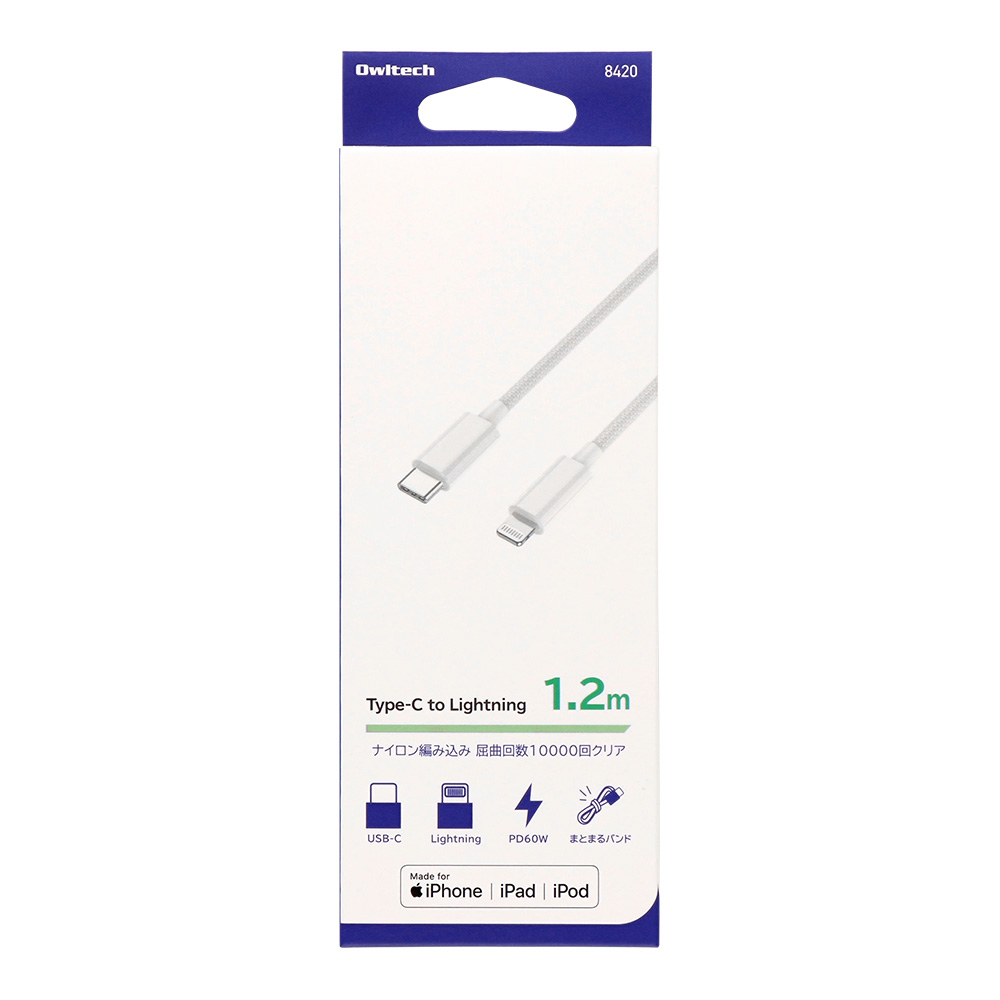 ナイロン素材でありながら絡みにくいブレイデッド(編み込み)ケーブルです。折り曲げ試験1万回の耐久性をもち、普段使いに最適な製品です。