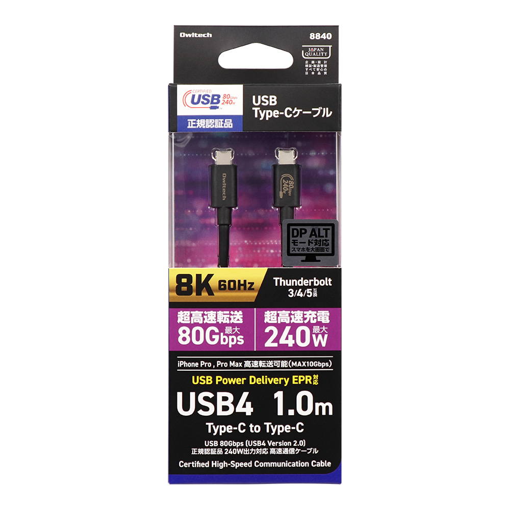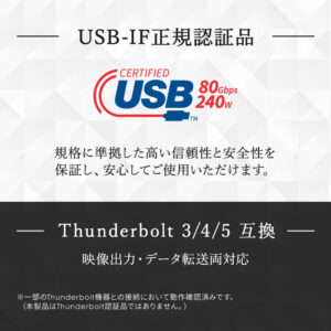 USB4 Version 2.0の正式仕様に準拠し、高い信頼性と安全性を備えた高品質なケーブルです。
