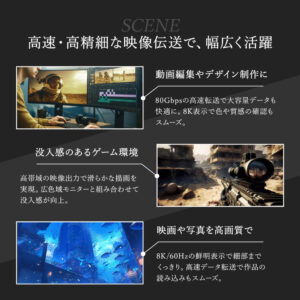 映像編集やクリエイティブワークにも最適で、DisplayPort 2.0/2.1対応機器と組み合わせることで、