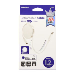 片方のケーブルだけが伸縮するからリール部分が邪魔にならず、デスク周りや外出先など多くのシーンで活躍します。手のひらに収まるサイズにケーブルを収納できるので持ち運びにも最適。