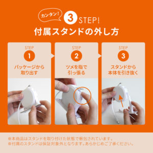 - ABS樹脂(本体)、TPE(ケーブル)、ABS樹脂(固定スタンド)