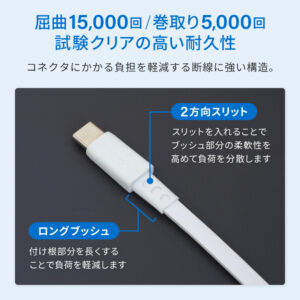 巻取り試験耐久:約 5,000回 - ケーブル長