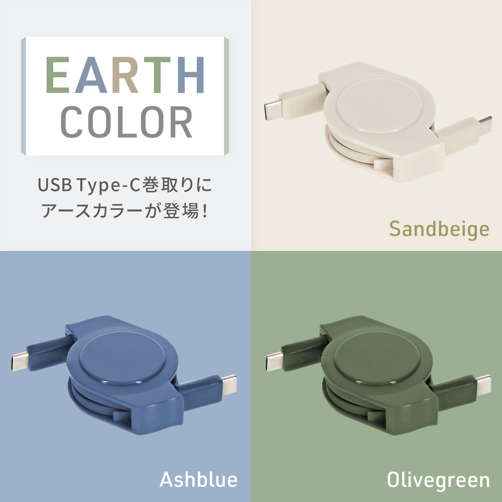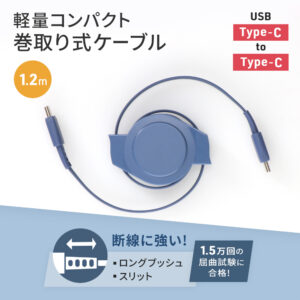 当社従来製品と比較して約41%の軽量化を実現した、軽量かつコンパクトなUSB Type-C to Cケーブルです。また収納時などにケーブルが絡みにくい巻取りリールタイプです。
