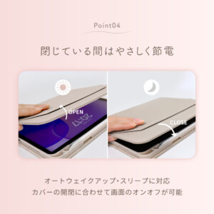 iPad側で「ロック/ロック解除」を有効にすると、カバーの開閉に合わせて画面が自動でオン・オフになります。手間が減るだけでなく、バッテリーの節約にもつながります。