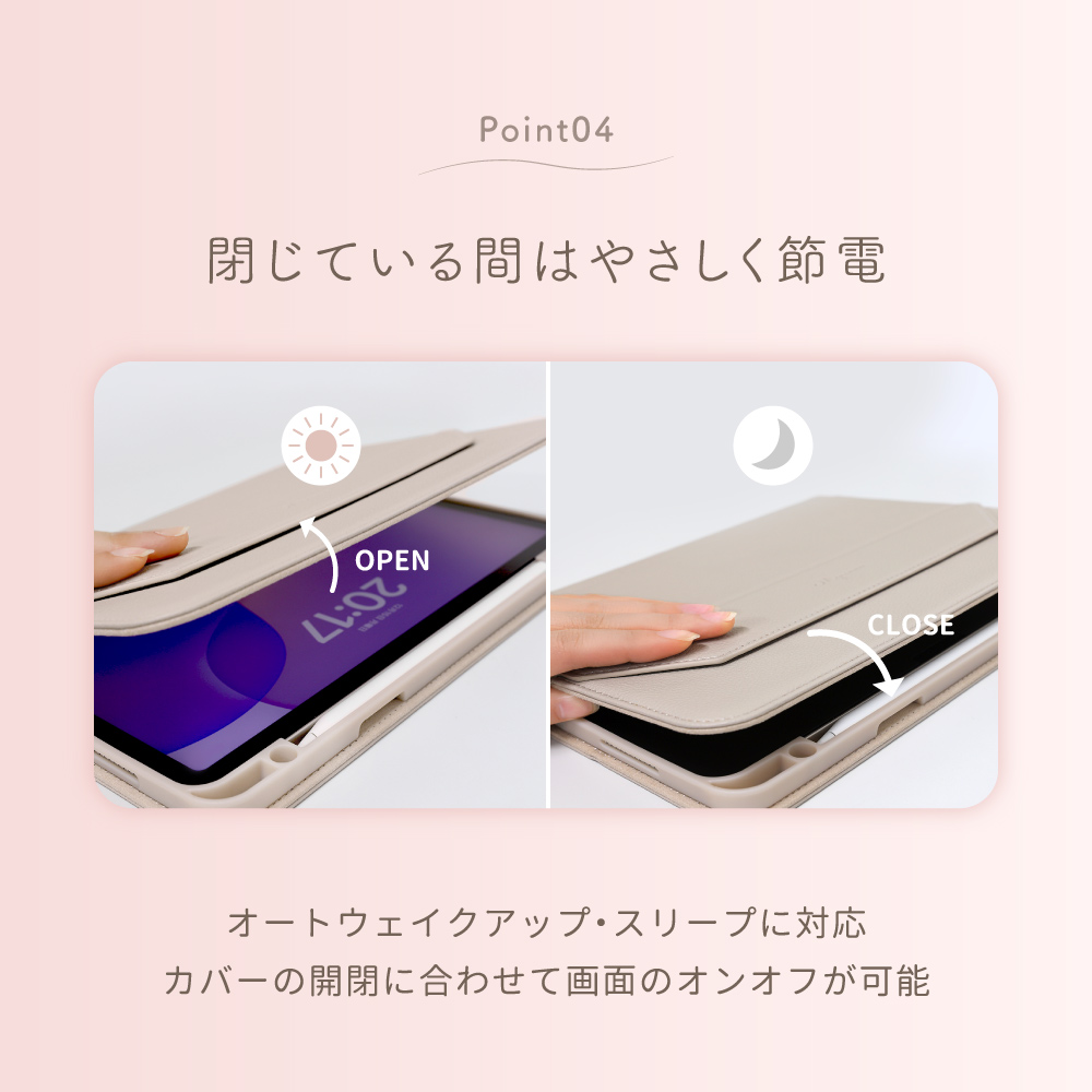 オートスリープ、オートウェイクアップに対応