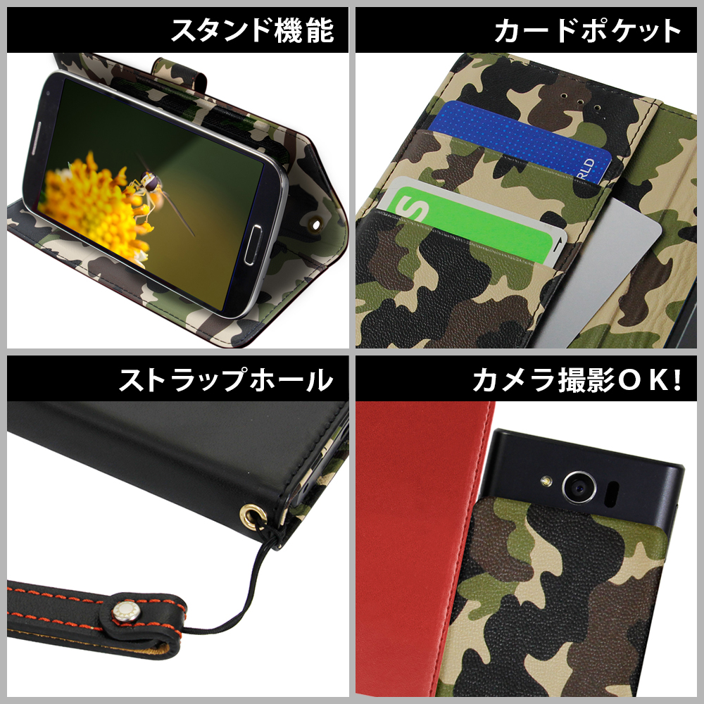 5.2インチまでのスマホ対応 裏地迷彩柄 手帳型マルチケース OWL-CVMU05CAシリーズ