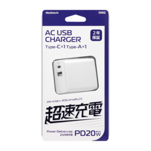 USB Type-CポートはUSB PD(Power Delivery)に対応。最大20W出力で対応機器の充電時間をぐっと短くできます。