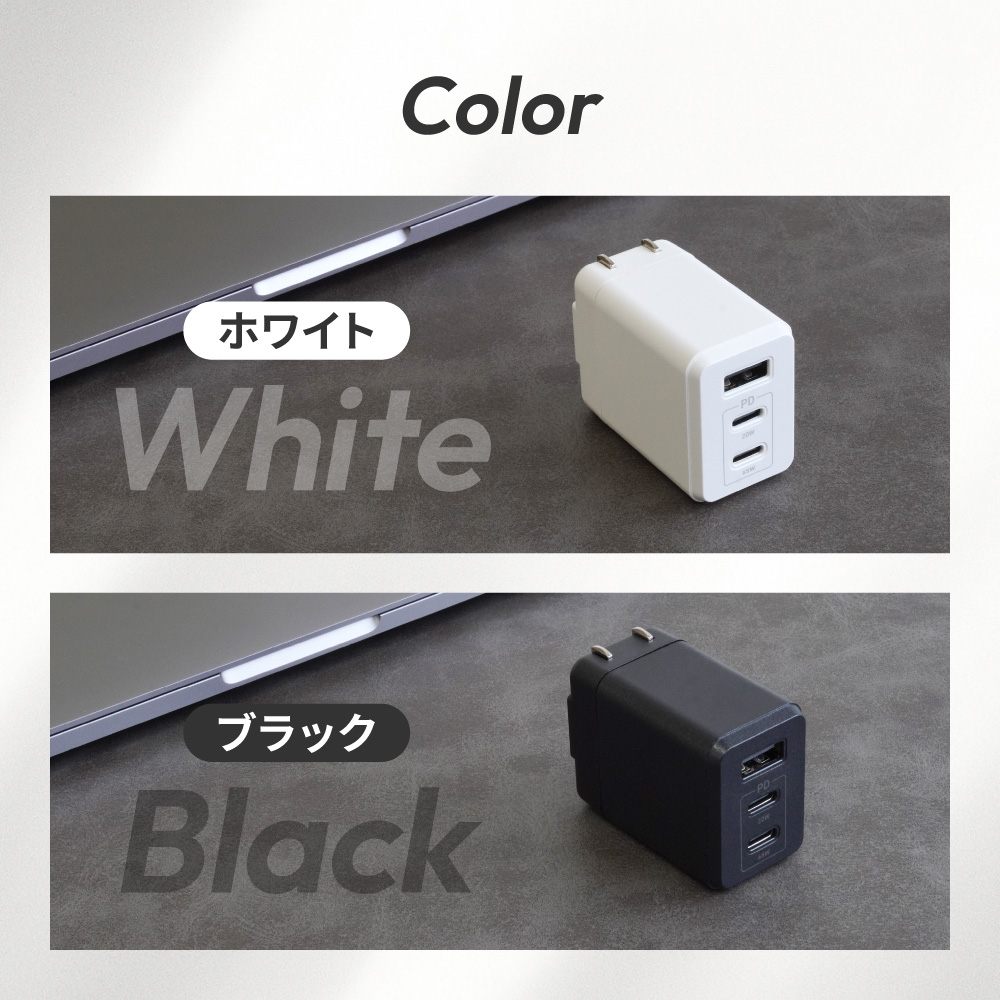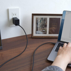 最大65W出力のUSB Power Delivery(PD)に対応したAC充電器です。ノートPCからスマートフォン、タブレットまで、さまざまな機器をこれ1台で高出力で効率的に充電できます。