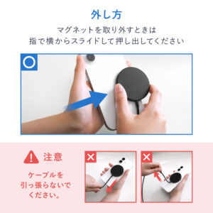 マグネット面とケーブル部分は、弊社独自の厳しい条件下で5万回の屈曲試験を行っても断線が見られなかった耐久性を誇ります。