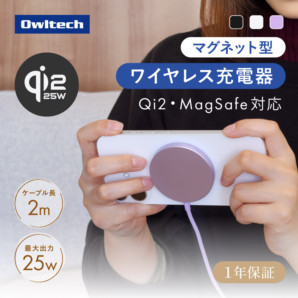 Qi2認証取得のケーブル一体型ワイヤレス充電器