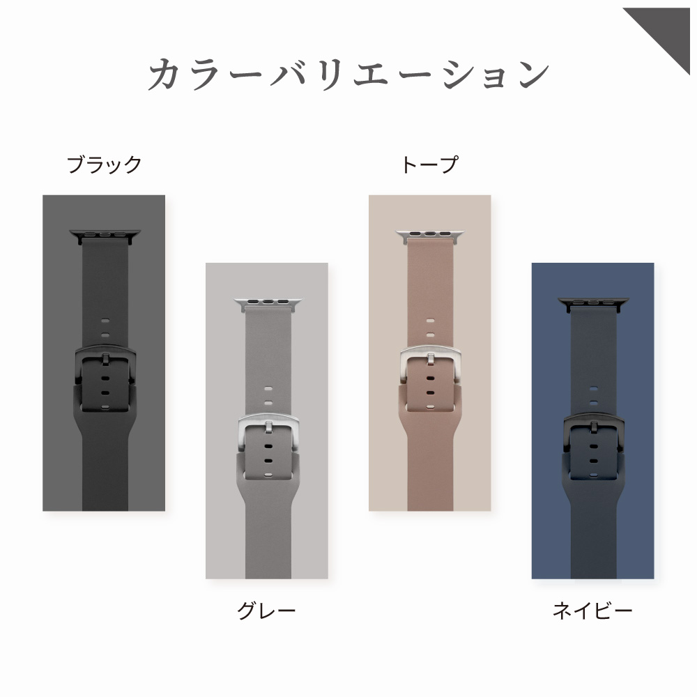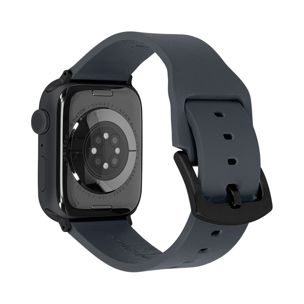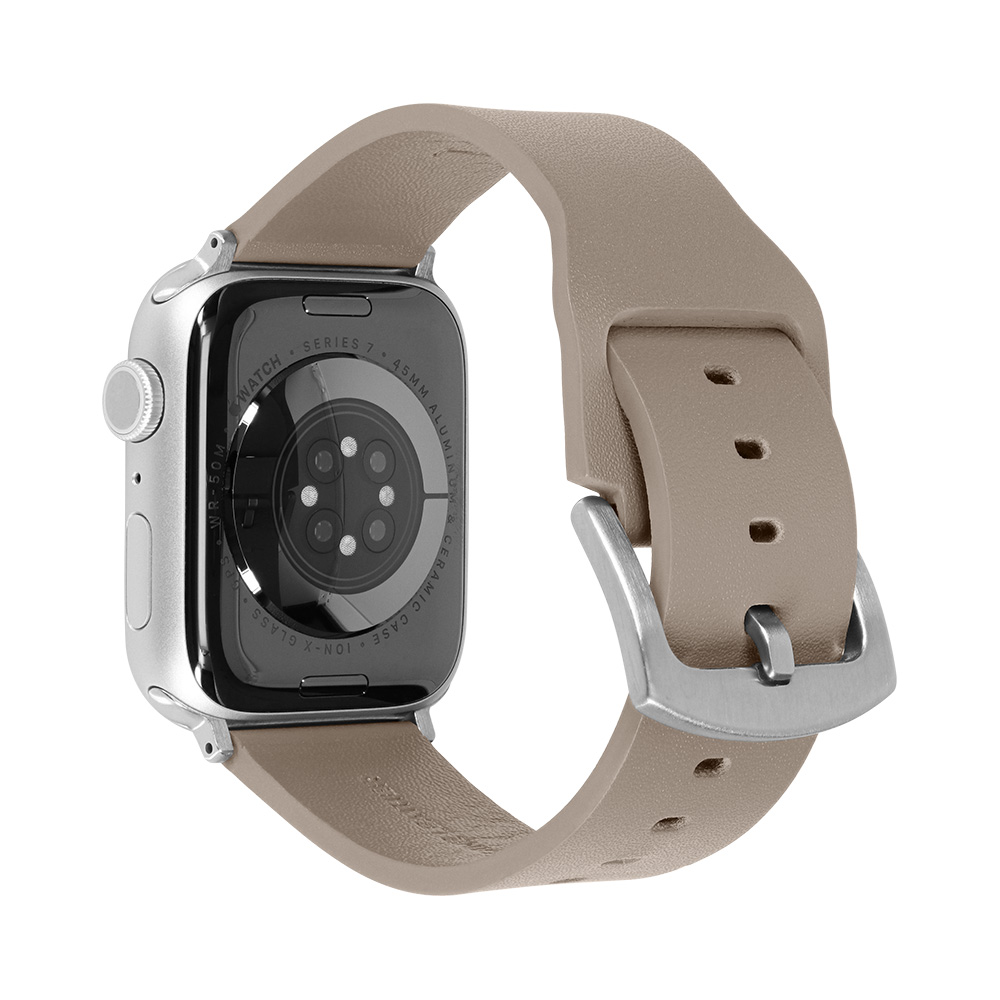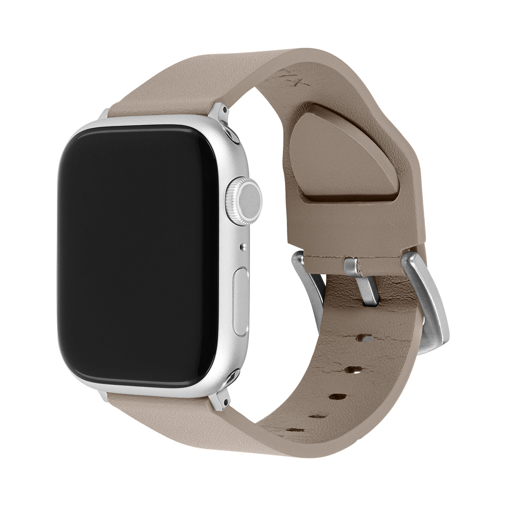 バンドの先端を通す輪(定革と遊革)がないため、スムーズに着脱ができるループタイプのレザーバンドです。ノーステッチ仕様でシンプルな外観のApple Watchとの親和性が高い、スタイリッシュなデザインです。