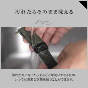 本製品にはゴムを編み込んだ特殊弾性ナイロンを用いているため、伸縮性に優れ手首にフィットします。また、通気性が良く蒸れにくいです。水洗いもできるため、清潔を保ちながらお使いいただけます。