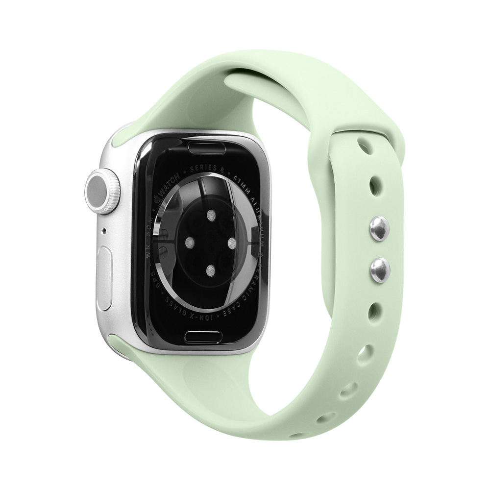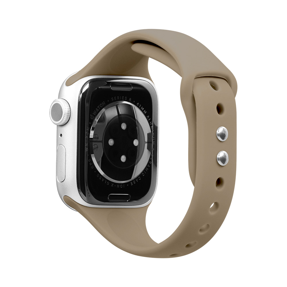 本製品はシリコン製のApple Watchバンドです。スリムなテーパードタイプで手首をすっきりと細見せできます。留め具が2つあるため、しっかりとバンドを固定でき、ワークアウトなどのアクティビティにもおすすめです。