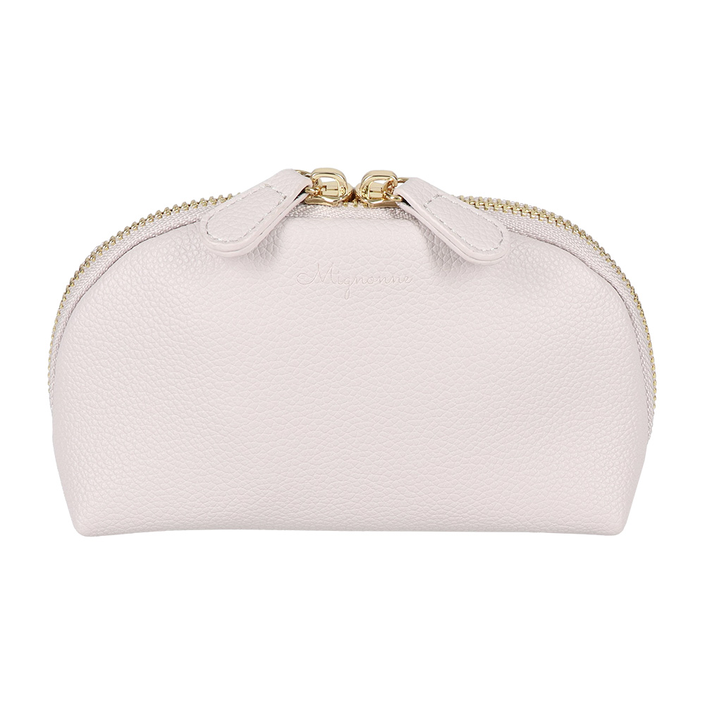 本製品はやわらかな質感のシュリンク調のPUレザーを採用したポーチです。レザー調でありながら重すぎない見た目で普段使いに最適です。