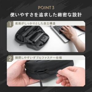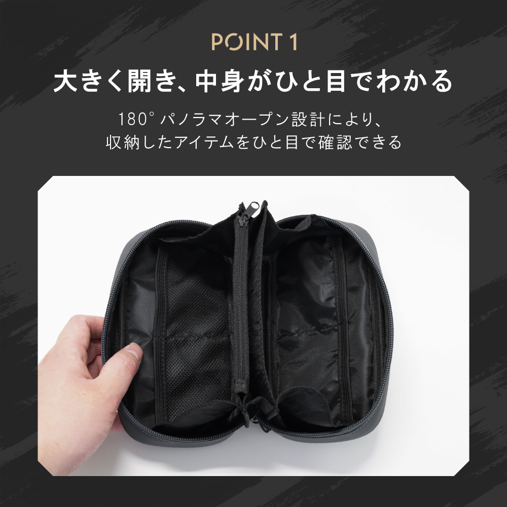 180度パノラマオープン設計のガジェットポーチ