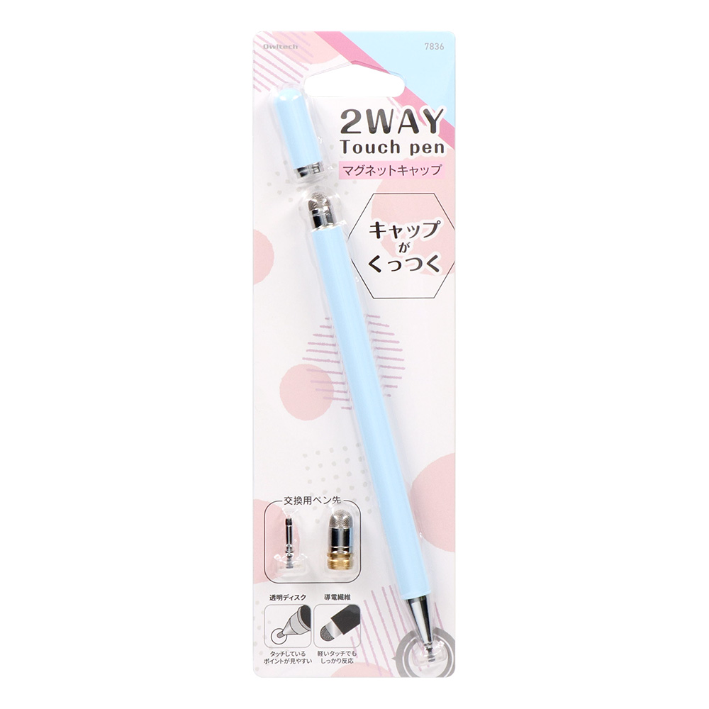 ペン先は導電繊維と透明ディスクの2WAY仕様。マグネットでキャップを吸着でき、充電不要でいつでもお好きなときにお使いいただけます。