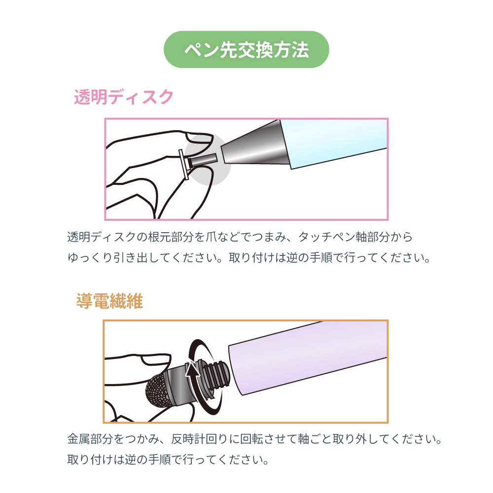 - 交換用ペン先(透明ディスク、導電繊維)