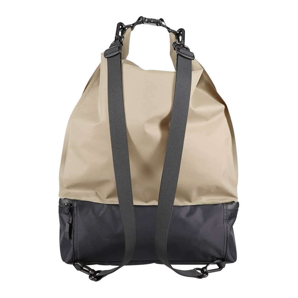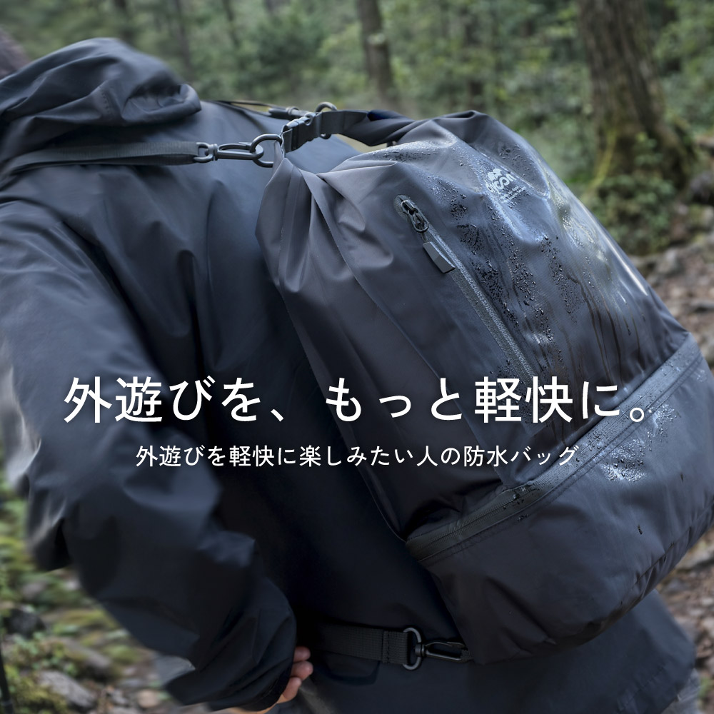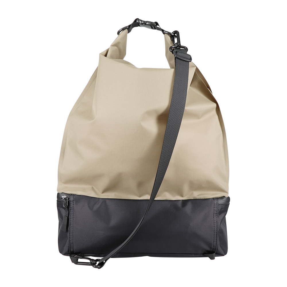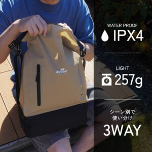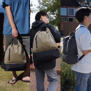 軽い雨や水しぶきから荷物を守る防水バッグです。手さげ・肩掛け・ナップサックの3WAYで使えるため、シーンに合わせて快適に持ち運べます。