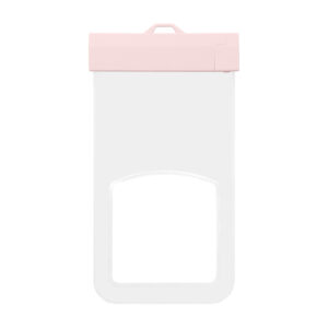ニュアンスカラーが特長的な、シンプルデザインのスマートフォン用防水ケースです。チャック袋をクリップで留めるユニークな構造で、フラットな開口部がミニマルさを演出します。