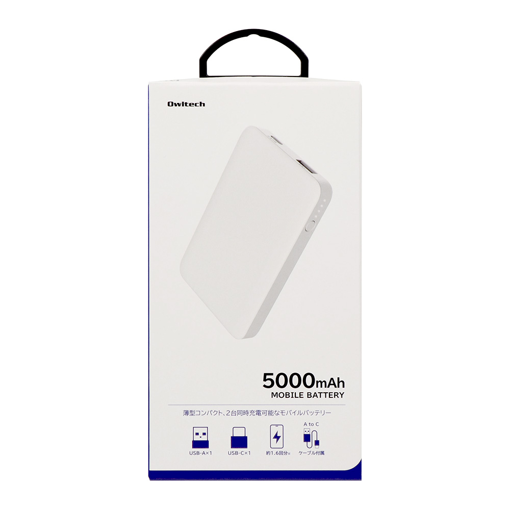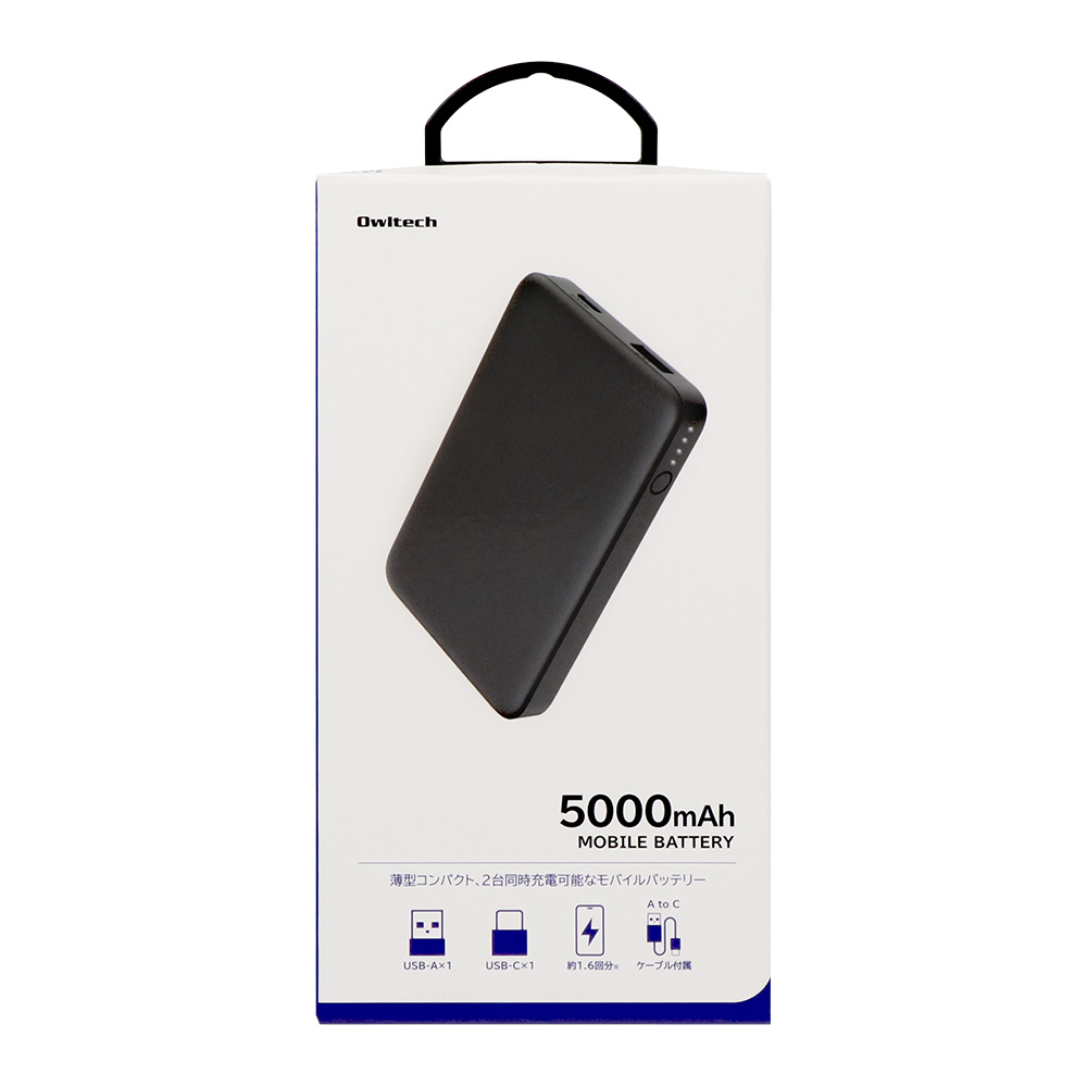 5000mAh 最大12W入出力対応 USB Type-C入出力/USB Type-A出力 モバイルバッテリー OWL-LPB5028シリーズ