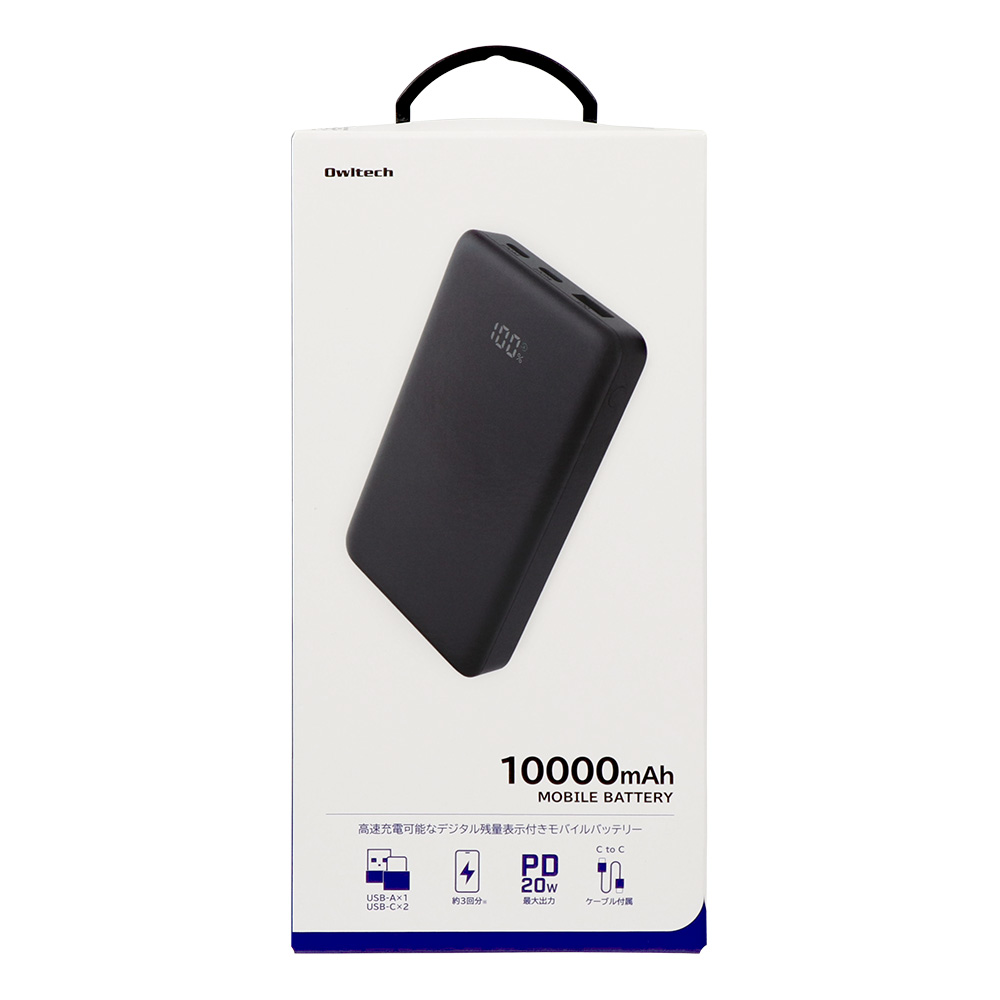 10000mAh 最大PD20W出力対応 USB Type-C入出力/USB Type-A出力 モバイルバッテリー OWL-LPB10028シリーズ