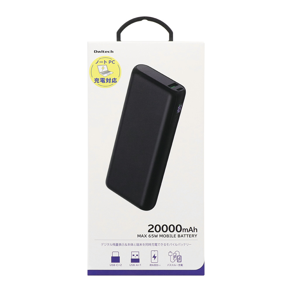 - リチウムイオン電池 3.65V/20000mAh(73Wh) / 3.7V/20000mAh(74Wh)