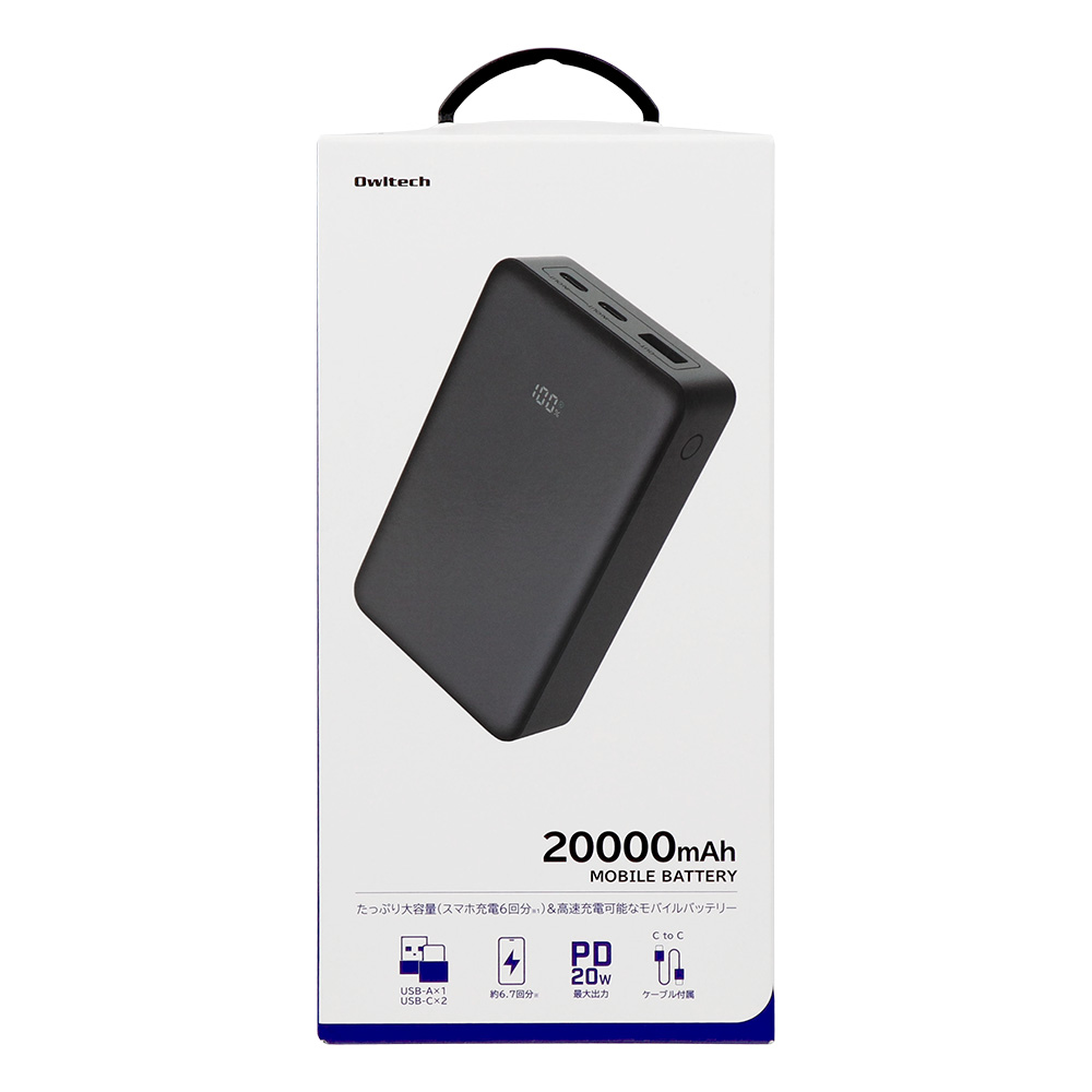 本製品はオウルテックの20000mAh史上、最軽量のモバイルバッテリーです。スマートフォンを約6.7回充電できるほど大容量で、1台あると心強い存在です。