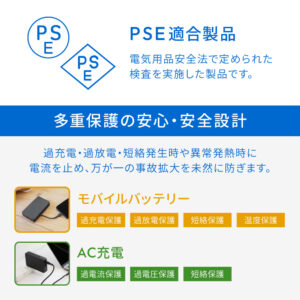 日本の法律である「電気用品安全法」で定められた検査を実施したPSE適合製品です。安心・安全にご利用いただけます。