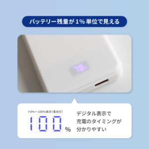 バッテリー残量を1%単位で確認できるデジタル表示を搭載。LEDランプ数の表示よりも充電のタイミングが分かりやすい仕様です。
