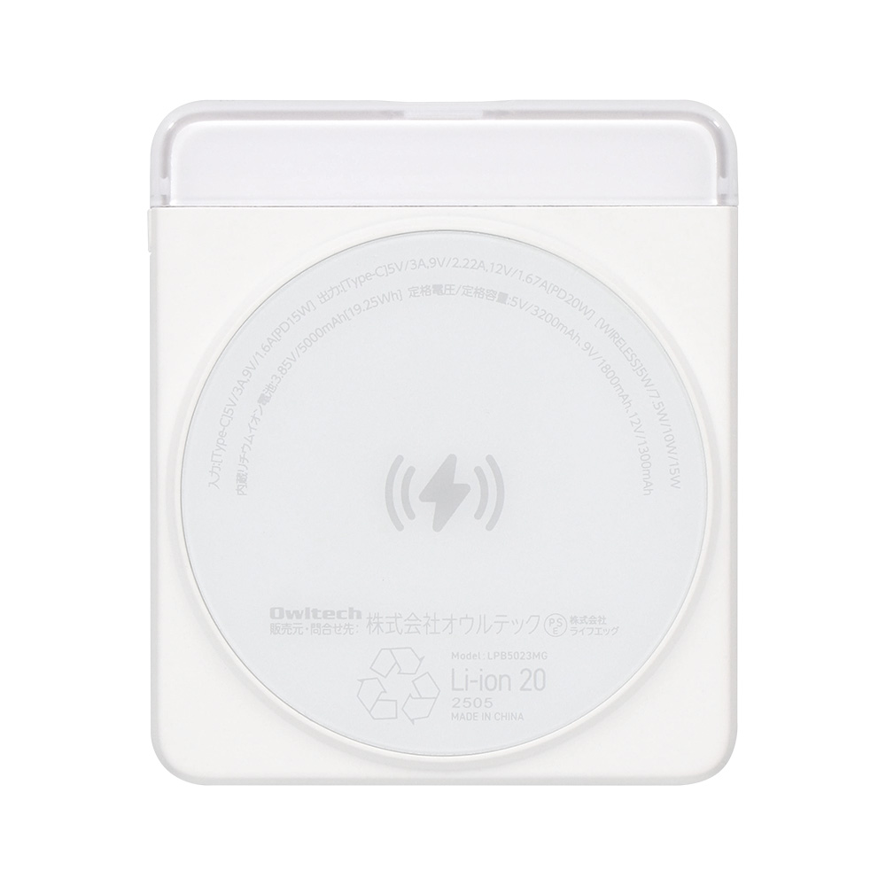 【販路限定】5000mAh PD20W出力対応 USB Type-C入出力 マグネット式ワイヤレス充電対応 モバイルバッテリー OEC-LPB5023MGシリーズ