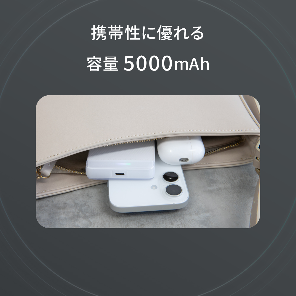 Qi2やMagSafeに対応する機器では、マグネット吸着により最大15Wでの安定したワイヤレス充電が可能です。