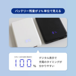 バッテリー残量を1%単位で確認できるデジタル表示を搭載。LEDランプ数の表示よりも充電のタイミングが分かりやすい仕様です。