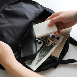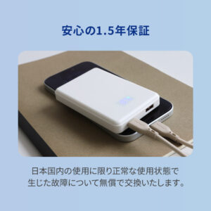 電池の電解質にゲル状素材を採用し、従来のモバイルバッテリーに比べて発火リスクを低減。また、劣化しにくい構造のため、毎日の充電にも安心して長く使えます。