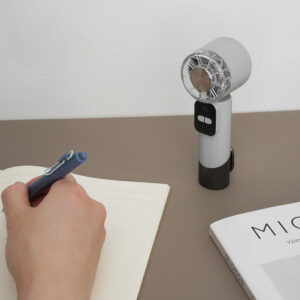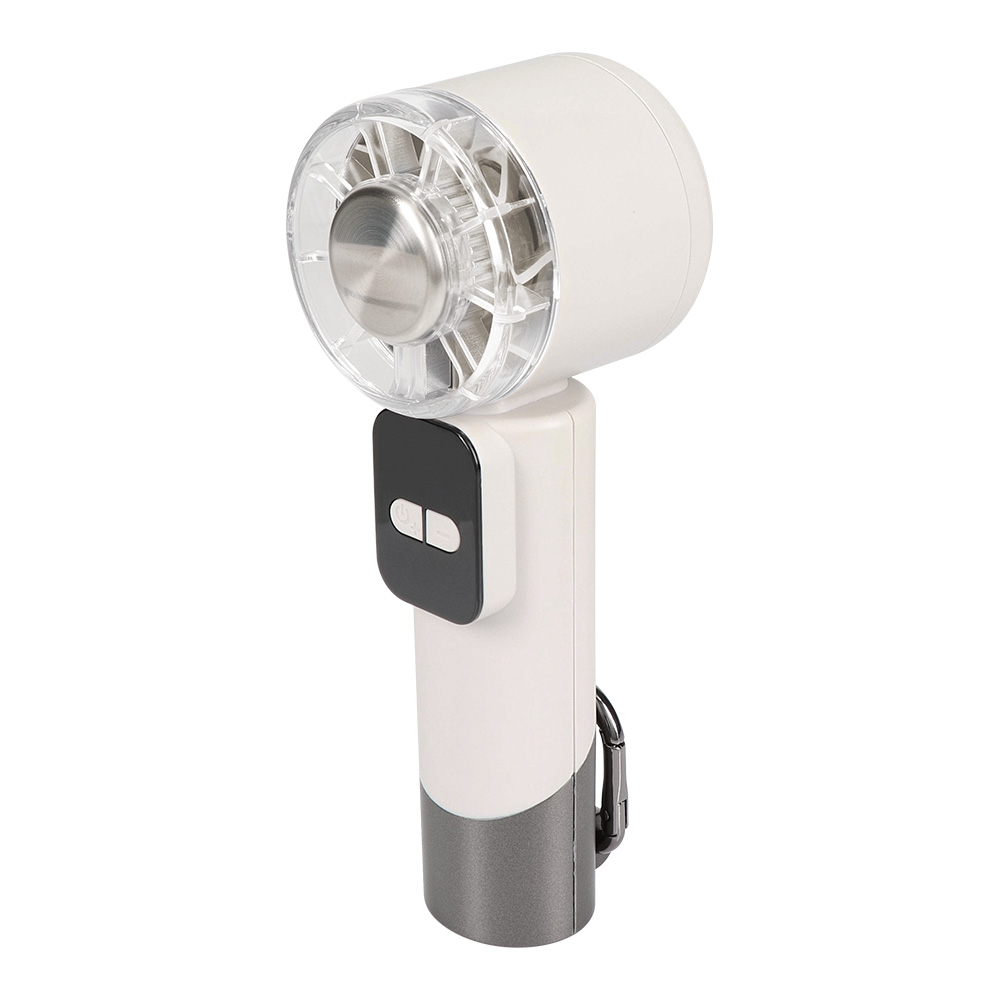 本製品はジェットのような大風量が特長のハンディファンです。カラビナ付きなのでお出かけ先に持って行きやすく、夏にぴったりの製品です。