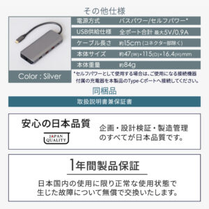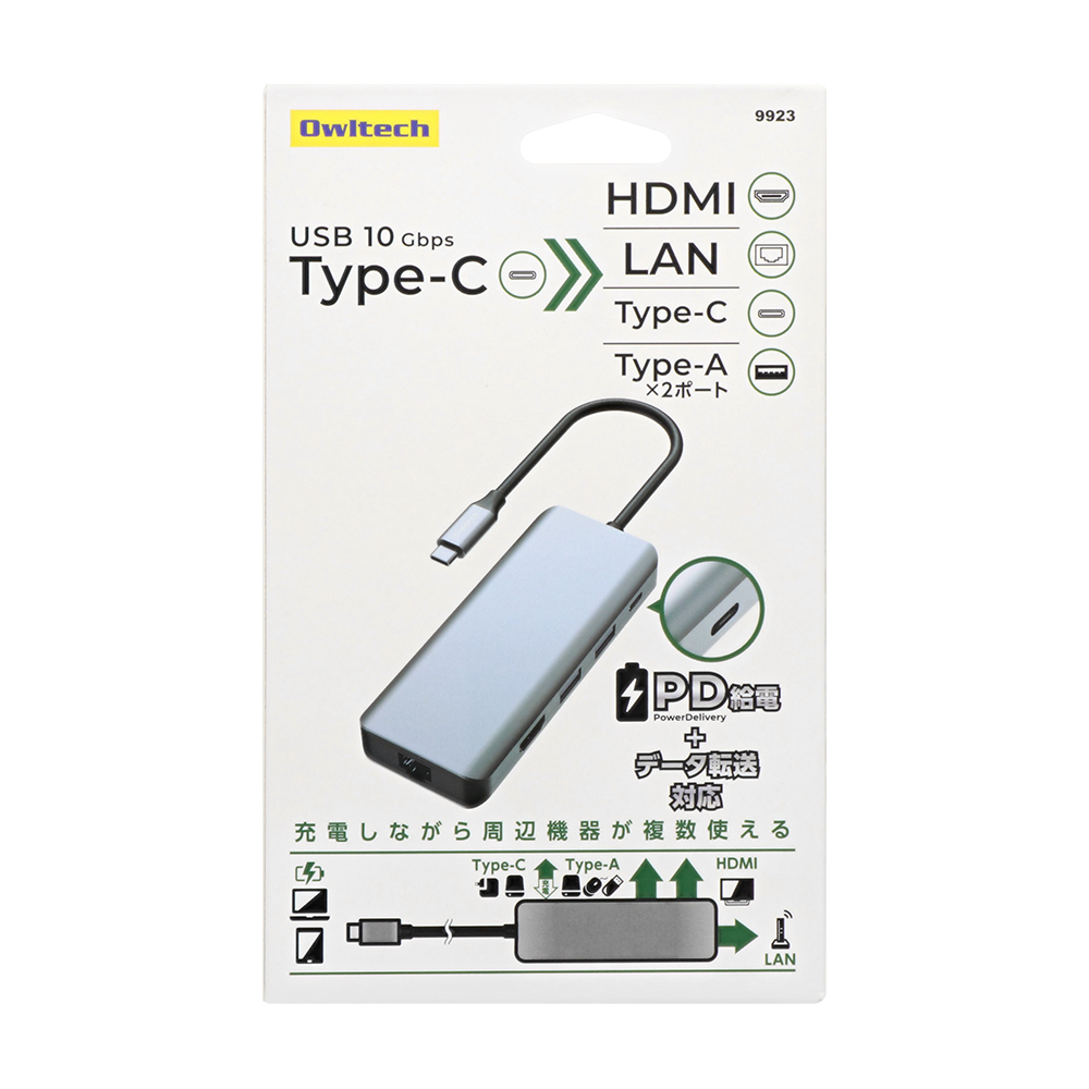 USB 10Gbps対応 HDMI/LAN/USB Type-A×2/USB Type-C 5 in 1 USB Type-C マルチポートアダプタ OWL-DSU31A2HLC-SV